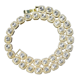 A dazzling statement piece, the Louie necklace features a bold design with shimmering rhinestones set in a polished metal frame. The stones catch the light brilliantly, creating sparkle and glamour.