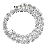 A dazzling statement piece, the Louie necklace features a bold design with shimmering rhinestones set in a polished metal frame. The stones catch the light brilliantly, creating sparkle and glamour.