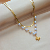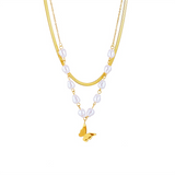 This beautiful necklace features a butterfly pendant made of lustrous pearls. The butterfly is a symbol of transformation, new beginnings, and hope, making this an ideal gift for a friend or loved one going through a tough time. The necklace is adjustable so it can be worn at different lengths, and the simple design makes it easy to dress up or down. Whether you're wearing it for a special occasion or just because, this necklace is sure to add a touch of elegance to your look.
